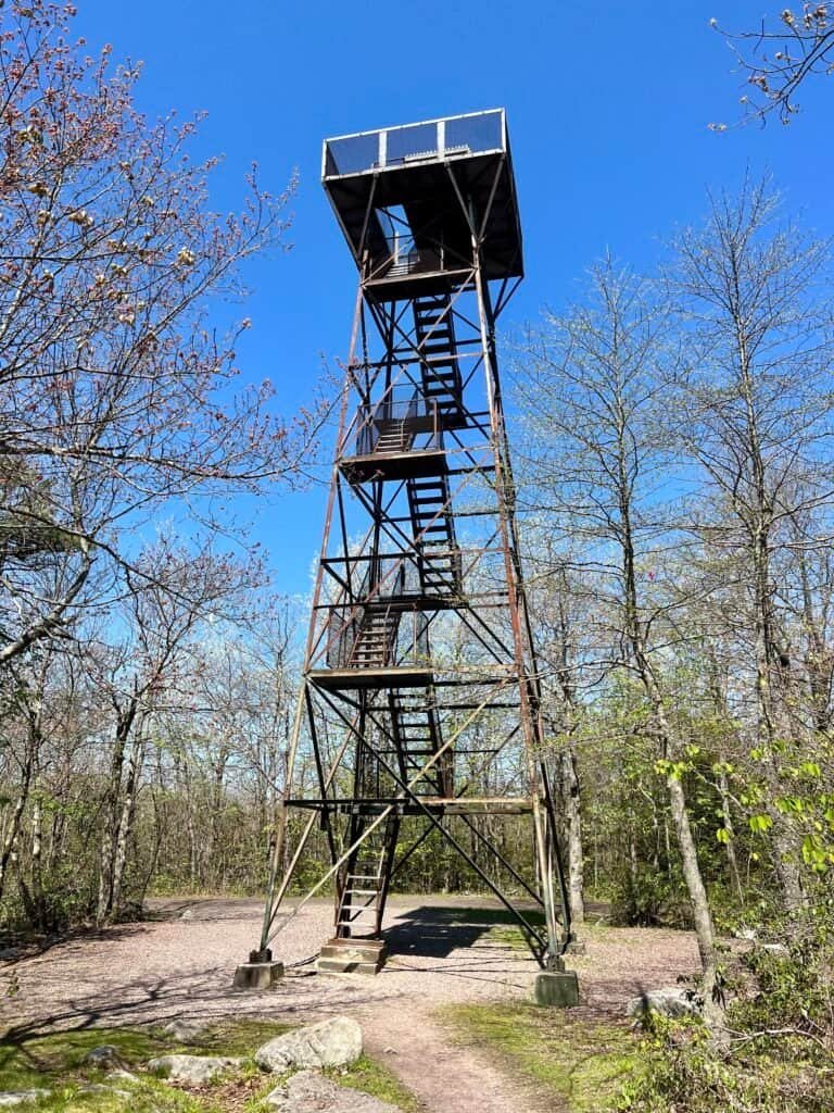 At the top is an observation tower, which I attempted to climb. As many of you may or may not know, heights are not something I love—somewhat counterintuitive for someone trying to summit all 51 high points in the U.S. (including the District of Columbia). As you can see in the photos, the stairs are pretty open, and since I was alone without a hiking buddy for support, I did my best, making it to the fourth platform before deciding that was enough. Oh well—maybe next time.