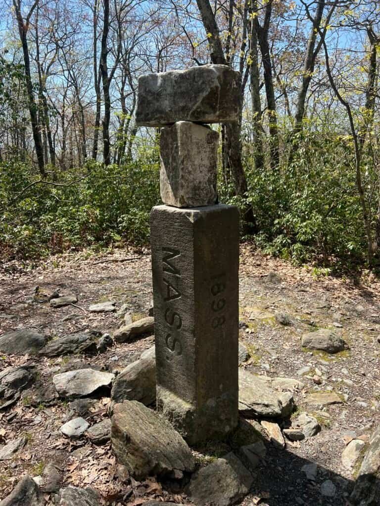 As you continue upward, the trail begins to crisscross the Massachusetts–Connecticut border, adding a fun geographic twist to the hike.
